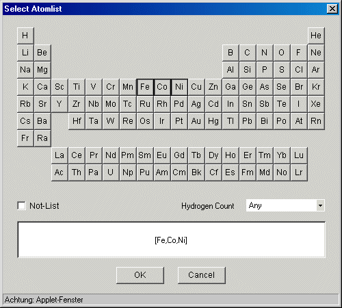 Periodensystem (Auswahl mehrerer Atome)