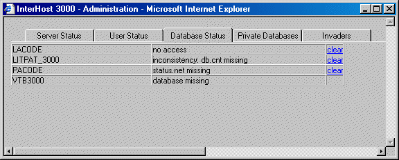 in der Anzeige 'Database Status' mit der Schaltfläche 'clear' die entsprechende Aktion auslösen.