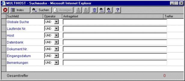 Die Datenbank Multihost verfügt über folgende Suchfelder: